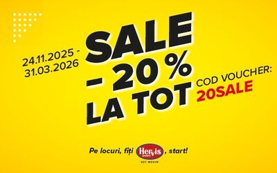 Super reducerile continuă la Hervis! 🏃 În perioada 24.11– 31.03.2026, te bucuri de 20% reducere. Reducerile sunt valabile atât online, prin aplicarea codului de reducere 20SALE, cât și în magazinele fizice. 🛍️