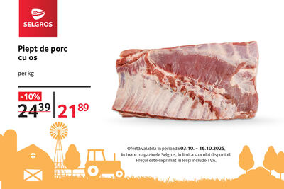 Pieptul de porc de la Carmangeria Selgros îți va aduce întotdeauna gustul autentic al tradiției culinare românești, acum la doar 21,89 lei/kg.