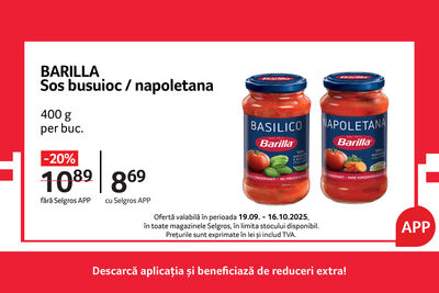 Oferta este valabilă în limita stocului disponibil, în perioada 19.09 - 16.10.2025, în toate magazinele, doar cu aplicația Selgros.