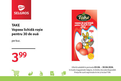 Oferta este valabilă în limita stocului disponibil, în perioada 03.04 - 30.04.2026, în toate magazinele Selgros.
